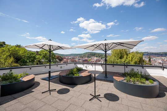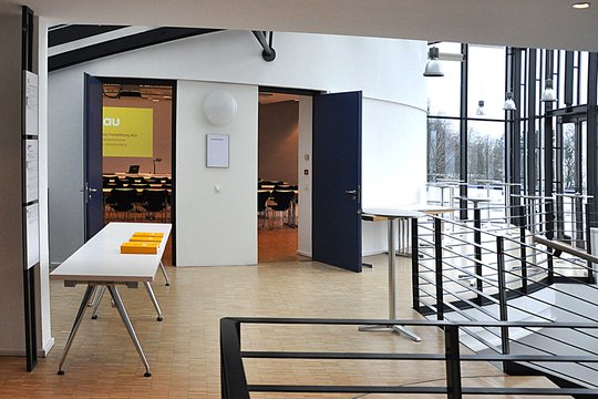 Der Saal Behnisch eignet sich hervorragend für Vorträge und Seminare mit bis zu 70 Personen. Bei Bedarf kann moderne Konferenz-, Video- und Audiotechnik zur Verfügung gestellt werden. Das angrenzende Foyer und die Dachterrasse bilden einen idealen Rahmen für Verköstigungen und Pausengespräche.
