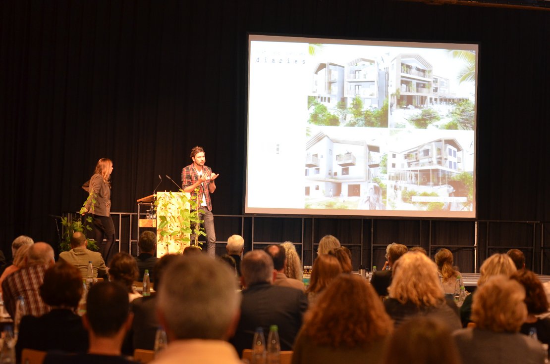 Hochwertige Architektur für Vinotheken, Verkaufsstellen und Weingüter wurden vorgestellt wie auch die Symbiose, die eingegangen wird, wenn man als Bauherr eines Hotelbetriebs eng mit einem Architekten zusammenarbeitet. So erging es Verena Huf, die von der Zusammenarbeit mit dem Architekten Lukas Rungger bei dem Umbau ihres Hotels in der Weinanbauregion Kaltern in Südtirol berichtete, der in seiner Planung die prägenden lokalen Merkmale sensibel aufgriff und integrierte. Sehr lebhaft und anschaulich präsentierten Bauherren und Planer ihre Beispiele und bereiteten Lust auf mehr. Michaela Wolf vom Architekturbüro bergmeisterwolf machte anhand eigener Projekte überzeugend klar, dass die Auseinandersetzung mit dem Ort ein wichtiger Baustein für gute Architektur ist.