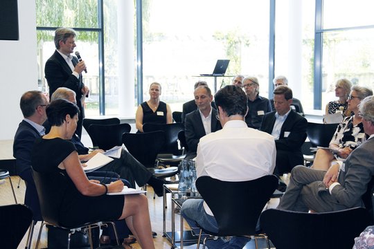 Zum Gewerbeflächendialog lud die Wirtschaftsförderung Region Stuttgart zusammen mit der Architektenkammer im Juli 2018 ein. „Beim Wohnungsbau wird auf Flächen-Sparen geachtet, während es beim Gewerbe bisher nur ein Randthema ist“, gab Thomas S. Bopp, Vorsitzender des Verbands Region Stuttgart bei seiner Begrüßung zu bedenken. Besonders auch in Hinblick auf die IBA 2027 schenkte er dem flächensparenden Bauen große Beachtung.