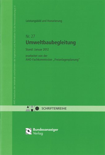 UmweltbaubegleitungLeistungsbild und HonorierungDas Heft Nr. 27 wurde von der AHO-Fachkommission Freianlagenplanung erarbeitet. Es kann beim AHO e.V. für 14,80 Euro inkl. gesetzl. MwSt. zzgl. Versandkosten bestellt werden unter www.aho.de/schriftenreihe