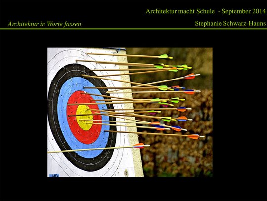 Im Fach Deutsch befasse sie sich mit Beschreibung, Analyse und Deutung von inhaltlichen und formalen Phänomenen, woraus sich auch immer "eine gewisse Mehrdeutigkeit" ergebe. In Fortführung dazu biete sich eine implizite Behandlung von Architektur und Städtebau entlang vorhandener Themen an, beispielsweise "Ich und die anderen", wo es auch um Abgrenzung gehe und sich leicht ein Bogen zur persönlichen Wohnsituation schlagen lasse. Baukulturvermittlung laufe am besten als Querschnittsthema, so wie sich auch die Unterrichtsmodule in den curricularen Bausteinen der Wüstenrot Stiftung auf die verschiedensten Fächer beziehen.