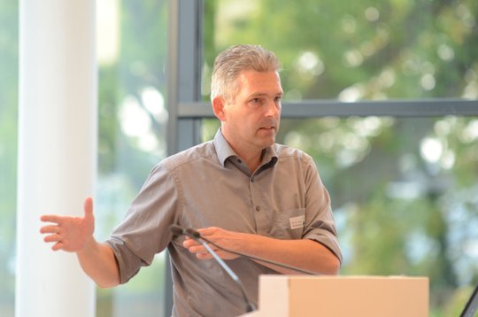 Aus Vorarlberg, dem Mekka für spannende Architektur, berichtete Georg Bechter, wie nachhaltiges Bauen funktionieren kann. Ausgehend von den individuellen Gegebenheiten hat sich der Architekt, der laut eigenem Bekunden "kein Ökofuzzi" ist, mit experimentellen Bauten einen Namen gemacht. Dazu zählen Häuser aus Stroh. Der Österreicher berichtete vom Wunsch seiner Bauherren, möglichst ökologisch und möglichst günstig zu bauen. Die gängigen Materialien wie Kalk oder Lehm wären zu teuer geworden. Sein Vorschlag, ein lasttragendes Strohhaus zu entwickeln, traf ins Schwarze. Das ökologische "Abfallprodukt" kann ohne Nachbehandlung auf dem Bau verwendet werden. Im konkreten Fall war ausreichend Grund und Boden vorhanden, um problemlos mit den dicken Ballen Wände hochzuziehen. Auch die sehr gut gedämmte Bodenplatte - das Material speichert die Wärme tagsüber, um sie in der Nacht wieder abzugeben - trage zum angenehmen Raumklima bei. Bechter erzählte von Kindern, die dort auffallend schnell zu ruhiger Besonnenheit fanden, nachdem sie der offene Grundriss zunächst zu wildem Rennen animierte.