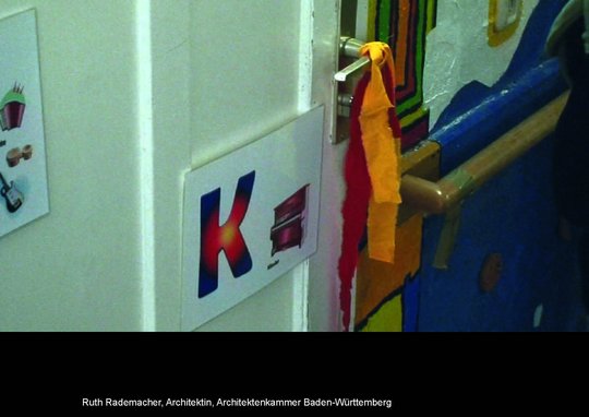 Die Stuttgarter Architektin Ruth Rademacher schloss den Reigen von Projekt-Berichten: Im Rahmen eines geplanten Erweiterungsbaus für eine Förderschule beteiligten sich zehn Schülerinnen und Schüler verschiedener Altersstufen und Behinderungen an einem Workshop. Mit verschiedenfarbigen Bändern markierten sie "gute Räume" und "schlechte Räume" und artikulierten die eigenen Wünsche und Vorstellungen für das neue Schulgebäude. Beeindruckend war auch die Schilderung der ganz eigenen Wahrnehmungsweise dieser Nutzer: "Wir Architekten haben von den Kindern viel gelernt."