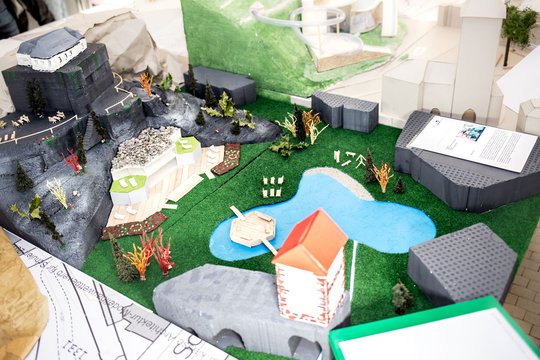 So professionell und realitätsnah der Wettbewerbsprozess war, so spielerisch, bunt und kreativ waren die Vorschläge. Jede Klasse konnte bei den Vernissagen ihr Projekt und ihre Vorgehensweise erklären. Deutlich spürbar waren das Engagement, die Begeisterung und die Intensität, mit der sich die Kids in das Thema eingearbeitet haben, aber auch die analytische und konzeptionelle Herangehensweise. Alle Klassen legten großen Wert darauf, dass sich die Menschen in ihrer Architektur wohl fühlen sollten. Dabei helfen sollten etwa ein Café mit Blick nach draußen, barrierefreie Wege, Gärten oder Ruheinseln wie ein "verkehrsberuhigter Platz für klare Gedanken". Die Ausschreibung sah keine konkrete Nutzung vor - Vorschläge dazu waren Teil der Aufgabe - und so war das Spektrum groß: vom Minizoo bis zur Wasserrutschenanlage, vom grünen Park bis zum Musikerhaus. Die Entwürfe präsentierten sich von märchenhaft bis utopisch, von bis ins kleinste Detail durchdachten und liebevoll ausgearbeiteten Modellen bis hin zum lockeren, interpretationsoffenen Wurf. Man sah Kugeln, die scheinbar den Hang heruntergerollt sind und zufällig ihren Platz im Tal vor dem Schwabentor gefunden haben (1. Preis der Kategorie 3: Klasse 6d am Kepler Gymnasium), oder ein Amphitheater für temporäre Nutzungen (1. Preis der Kategorie 6: Klasse 10b am Wentzinger Gymnasium). Preisgekrönt war auch das Projekt der Klasse 8 der Freien Schule Kapriole (1. Preis der Kategorie 4): Ein transparentes Lern- und Forschungshaus mit Felsenkino und Kletterwand sowie Schlafwaben im Fels - und selbstverständlich auch WLAN für alle. Sogar über die Finanzierung dieses Projekts wurde nachgedacht: High-Tech-Firmen sollten Sponsoren sein und hier auch ihre künftigen Arbeitnehmer rekrutieren können. Der vierte Preisträger (1. Preis der Kategorie 5: Klasse 9e am Kepler Gymnasium) stellte mit seinem Modell ein umfassendes Konzept für ein Natur-Erlebnis-Zentrum Schwarzwald vor.