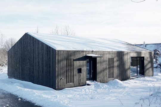 Auf einem ehemaligen Bauernhof in einem landwirtschaftlich geprägten Gebiet gliedert sich das Haus in die frühere Baustruktur ein. An Stelle des Neubaus stand ehemals ein landwirtschaftliches Betriebsgebäude. Der Bungalow ist in Holzrahmenbauweise errichtet. Die Gegebenheiten des Grundrisses werden genutzt, um eine effektive und kostensparende Gebäudestatik, in Form eines Dreigelenkrahmens, zu erstellen. Die dunkle Hülle des Gebäudes lehnt sich an das Erscheinungsbild alter Feldscheunen an.