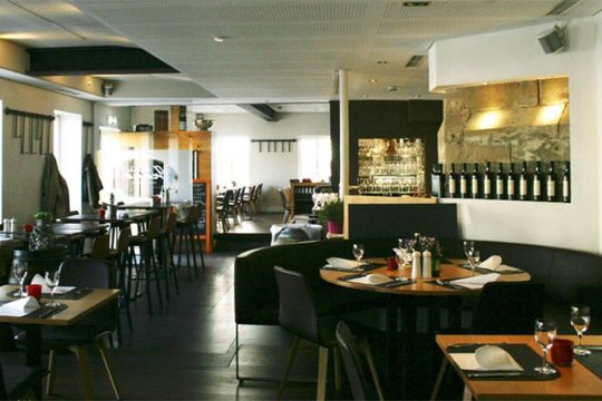 Interessante Blicke auf „Bilder in die Vergangenheit“ bietet der Innenausbau des alten Kornhauses am Marktplatz in Öhringen. Die alten Deckenbalken im Erdgeschoss, ein Stück freigelegte Außenmauer der Kirche, der I-Träger aus dem Umbau zum Warenhaus in den 1960er Jahren sorgen für Highlights in den angenehm zurückhaltend gestalteten Gasträumen. Helle Wände, dunkle Böden und die ebenfalls dunkel gestalteten Träger bilden schöne Kontraste zum Natursteinmauerwerk und der unbehandelten Eiche. Mit den wiederhergestellten zusätzlichen Türelementen öffnet sich das Kornhaus zum Marktplatz und trägt auch mit der farblichen Außengestaltung zur Belebung bei. Eine gelungene Sanierung, die an alle Zeitphasen der über 500jährigen Geschichte des Baus erinnert.
