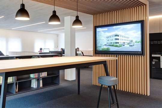 Die ehemaligen Praxisflächen im Marktplatz 4 in Niederstetten standen über viele Jahr leer. Bis sich die Firmen Grups Architekten und die Hohenloher Wohnungsbau GmbH entschieden, das Gebäude zu ihrer neuen Arbeitswelt umzugestalten. Entstanden sind moderne Arbeitsflächen für bis zu 18 Mitarbeiter. Das Ziel war, einen Ort zum Arbeiten und Wohlfühlen zu schaffen.