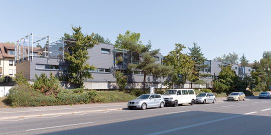 Wohnen statt Parken – Reihenhäuser auf einem Parkdeck, KonstanzProjektträgerin: WOBAK Städtische Wohnungsbaugesellschaft mbHEntwurf: Hannes Mayer, WOBAK Städtische Wohnungsbaugesellschaft mbH, Konstanzprämiert beim Beispielhaften Bauen