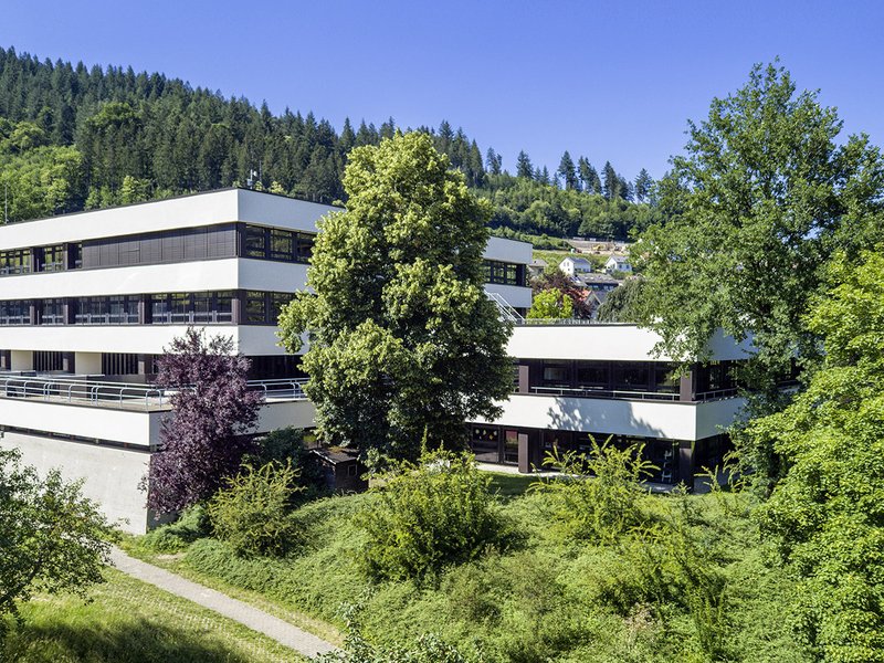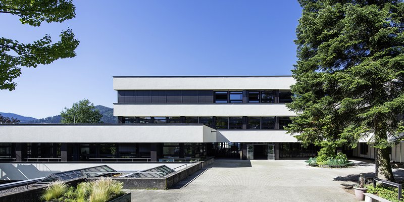 Anschließend an ein gewachsenes Wohngebiet wurde 1972 das Berufliche Schulzentrum Wolfach als klassischer Sichtbetonbau fertiggestellt. Mit einer klaren, geometrischen Formensprache staffelt sich das Schulgebäude mit insgesamt vier Geschossen den Hang hinauf.Ziel der Maßnahme war es, die in die Jahre gekommene Gebäudehülle mit ihren ungedämmten Sichtbetonfassaden energetisch zu sanieren sowie den Komfort und die ökonomische Wirtschaftlichkeit zu steigern, ohne den Charakter des Betonskelettbaus durch den Eingriff zu verlieren.