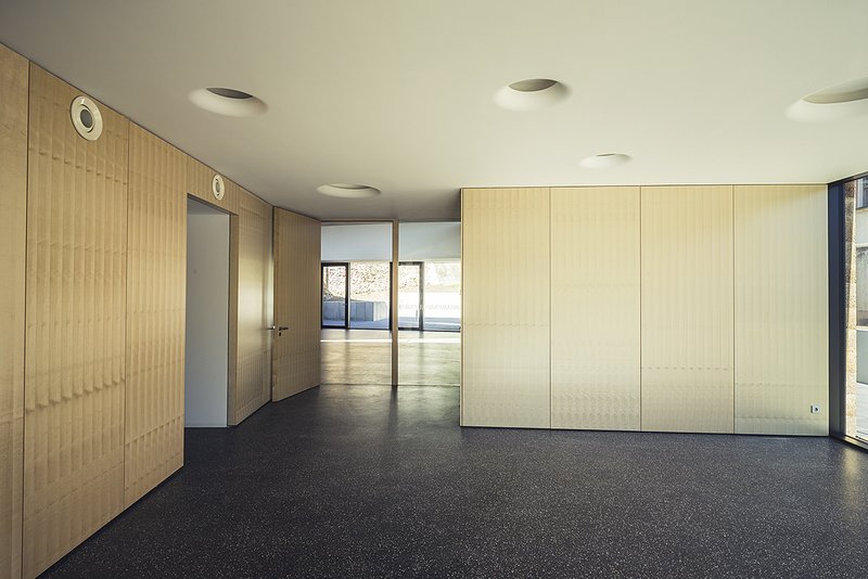 Das Gemeindehaus umfasst die Sanierung und Renovierung des denkmalgeschützten Bestandsgebäudes und den Neubau des Gemeindesaals mit Nebenräumen. Altbau und Neubau stärken sich in ihrem Charakter gegenseitig und bilden ein stimmiges Ensemble.