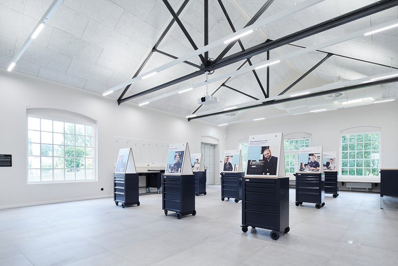 DauerausstellungDie Dauerausstellung widmet sich auf 400 Quadratmetern der Wirtschaftsgeschichte der Region und dem Thema der Verbindungstechnik. Ein Dreiklang aus Lounge, Labor und Werkstatt vermittelt spannende Eindrücke und lässt die Besucherinnen und Besucher selbst aktiv werden. Die sachliche, moderne Gestaltung und zahlreiche interaktive Stationen laden zum Entdecken und Verweilen ein.