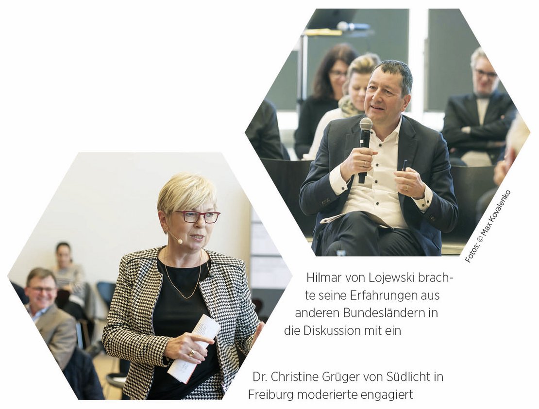 Beatrice Soltys ist Vizepräsidentin der Architektenkammer und Bürgermeisterin in Fellbach. Als solche ist sie selbst in zahlreiche planerische Prozesse einbezogen. Dabei stellt sie immer wieder fest: Die vorhandenen Planungsinstrumente werden nicht oder nicht sinnvoll angewendet. Darüber hinaus scheitern die Planungsziele oftmals am engstirnigen Denken in Stadtgrenzen – an der berühmten „Kirchturmpolitik“. Eine gute Stadtplanung ist eine integrierte Stadtplanung, so die gelernte Architektin. Wohnen, Wirtschaft, Freiraum und Mobilität müssen gemeinsam gedacht werden – und es bedarf der Leit- und Vorbilder. Hier besteht in Baden-Württemberg noch Nachholbedarf. Für Thomas Kiwitt wird die Situation vieler kleiner Gemeinden im Südwesten erschwert, weil ihre kommunalen Grenzen eher zufällig gesetzt sind. Sie entsprechen nicht den Lebenswelten, so der Planungsdirektor vom Verband Region Stuttgart. Probleme bestünden nicht in mangelnden Zielen, sondern in der Umsetzung.