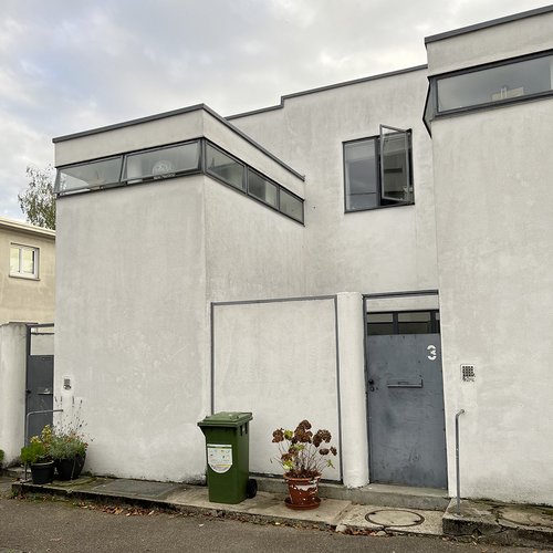 Mit seinen beiden zum UNESCO-Weltkulturerbe gehörenden Wohnhäusern verfolgte Le Corbusier (gemeinsam mit seinem Büropartner Pierre Jeanneret) die Idee einer „Wohnmaschine“: Allen Menschen, egal ob Dienstmädchen oder Hausbesitzer, steht dort grundsätzlich der gleiche Platz zu – eine Fläche mit 2,5 Metern Breite. Die Raumaufteilung ist in den verschiedenen Stockwerken exakt gleich, nur Raumhöhe und Farbe schaffen Individualität. Gleichzeitig werden Farben zur Orientierung eingesetzt– Rot signalisiert beispielsweise eine Tür, einen Eingang. Die Räume sind klein und funktional gehalten. Einbauschränke sparen Platz, der Wohnbereich ist gleichzeitig das Schlafzimmer, Rollwände schaffen Privatsphäre, die Betten werden wie in einem Zugabteil nur bei Bedarf hervorgeholt. Garten und Dachterrasse fungieren im Doppelhaus, in dem das Weissenhofmuseum untergebracht ist, als Orte der Begegnung zwischen den Mietern, die Gemeinschaft stiften.