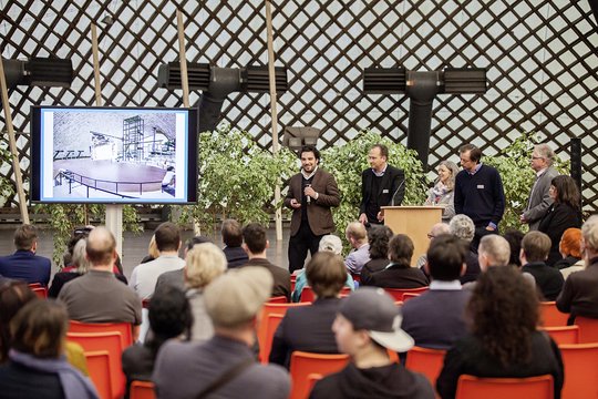 Dafür hatten sich Experten aus dem In- und Ausland zu vier Gremien zusammengefunden – und spontan ein fünftes zum Bereich "Raumklima und Konstruktion" einberufen. Neben Diskussionsrunden zu den Themen "Spiel und Sport", "Experimentarium", "Innovation-Loop" und "Multi-Frei" berieten Akustik-, Klima- und Holzbau-Experten, Bauphysiker und Statiker über die Grenzen und Möglichkeiten neuer Nutzungskonzepte. "Im Sommer ist die Multihalle zu heiß, im Winter zu kalt", erklärte etwa Professor Volkmar Bleicher von Transsolar Energietechnik in Stuttgart eines von vielen Problemen der Multihalle. Wären womöglich Pneus, verschieden große Traglufthallen, in denen man ein eigenes Klima schaffen könnte, die Lösung?
