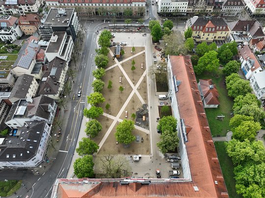 Station 2: Arsenalplatz Ludwigsburg | 2024-2025 Umgestaltung eines Parkplatzes in einen Stadtplatz B: Stadt Ludwigsburg LA: MANN LANDSCHAFTSARCHITEKTUR, Fulda