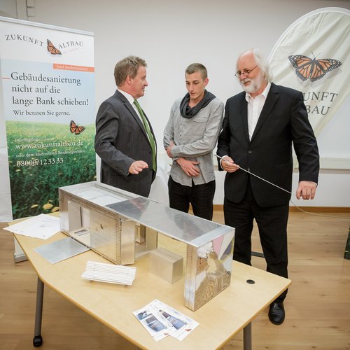 Im siegreichen Modell von Dennis Miller werden die wichtigsten Energietechniken für die Sanierung von Altbauten anschaulich gezeigt. Besonders überzeugt hat die Jury ein bestechend einfaches Raumkonzept, eine realitätsnahe Wohnatmosphäre und eine tatsächlich funktionierende Haustechnik für das zu bauende Musterhaus. Neben Innen- und Außendämmung, Wärmeschutzfenstern und Verschattungssystemen werden eine Lüftungsanlage inklusive Wärmerückgewinnung, ein modernes Heizsystem und eine Solaranlage gezeigt. Auch hocheffiziente Beleuchtungstechniken sind Bestandteile des Hauses.