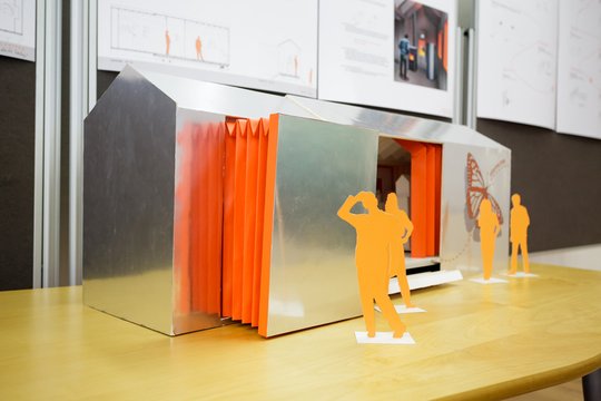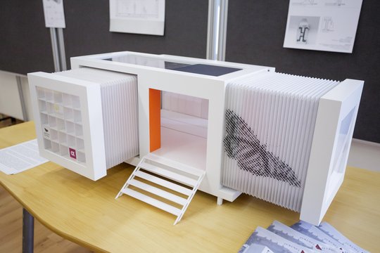 Die Studierenden hatten bis 16. Juli 2014 ihre Entwürfe mit Grundriss, Ansichten und Schnitten sowie einem Modell abgegeben. Das realisierte Exponat ist transportabel, um landesweit auf Tour gehen zu können.