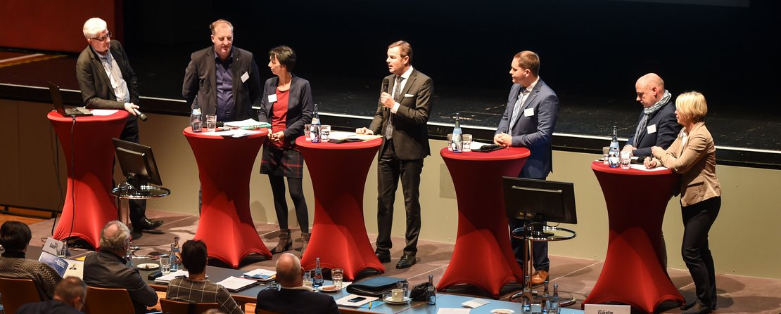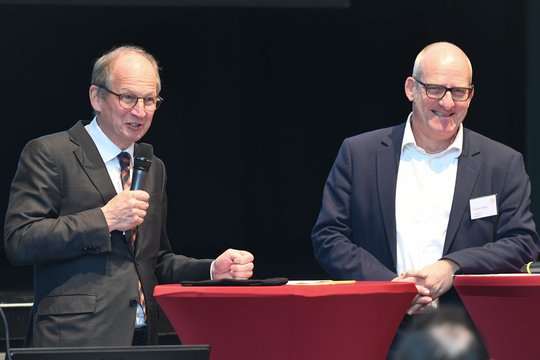 Den Beginn machte die interdisziplinäre Zusammenarbeit von Handwerk und Architektenschaft. Dazu diskutierten der Vizepräsident der Architektenkammer Baden-Württemberg Stephan Weber mit dem Präsidenten des baden-württembergischen Handwerkkammertags.