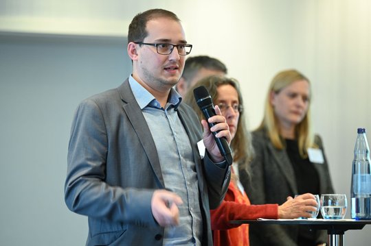 Oliver Lamprecht wünscht sich mehr baukulturelle Bildung in der breiten Bevölkerung. Der technische Geschäftsführer des kommunalen Wohnungsunternehmens STADTBAU Pforzheim betonte: "Was die freien Architekten beschäftigt, beschäftigt auch uns Angestellte." Die Wertschätzung, die kaufmännische Geschäftspartner für die Arbeit seines Berufsstands hätten, sei oftmals "lausig". Moderatorin Carmen Mundorff verwies dazu auf die Kammerinitiative Architektur macht Schule, dank derer die baukulturelle Bildung mit zunehmendem Erfolg im Schulalltag Fuß fasse.