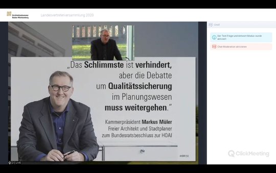 Die 46. Landesvertreterversammlung der Architektenkammer fand erstmals in ihrer Geschichte digital statt.