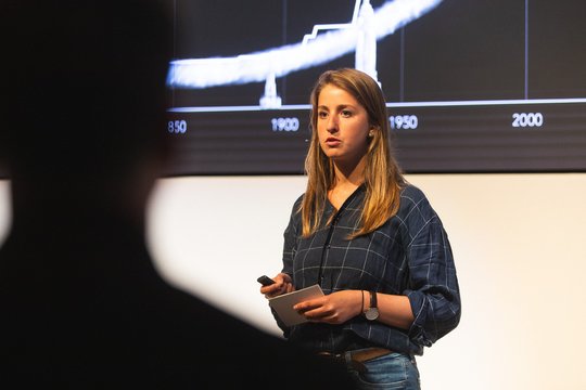 Nach dieser Nahrung für unser Denken, stürmte die Studentin Marie Werkhausen die Bühne und entzündete ein Feuerwerk an Leidenschaft für das zukünftige Bauen. Nach einem begonnenen Maschinenbau-Studium, entdeckte Sie die Liebe zur Architektur, um am Lehrstuhl von Thomas Auer für Gebäudetechnologie und klimagerechtes Bauen an der TU München zu erfahren, wie wir unsere Zukunft nicht Ver-Bauen, wenn wir uns auf den Bestand und das Einfache Bauen konzentrieren. Nur wenn wir alle gemeinsam diese Direktive weiterverfolgen haben auch sie und die kommenden Generationen eine lebenswerte Zukunft.