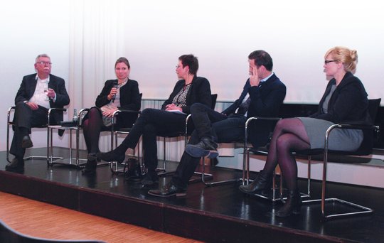 Im Rahmen der anschließenden Podiums- diskussion, moderiert durch Barbara Neumann-Landwehr, verwies Prof. Franz Pesch auf den vorwiegend technologisch ausgerichteten Ansatz des Fraunhofer-Instituts. Gerade die soziale Kohäsion und die Einbindung der Stadtgesell- schaft seien wesentliche Komponenten einer funktionierenden und lebendigen Stadt. Auch die Materialität, der menschliche Maßstab und die Schönheit der urbanen Stadt als nicht quantifizierbare Qualitäten schaffen Identität und dürften nicht vernachlässigt werden.Dabei verwies er auf die Forschungs- und Lehrtätigkeiten der gerade in Stuttgart stark vertretenen Städtebauprofessuren.