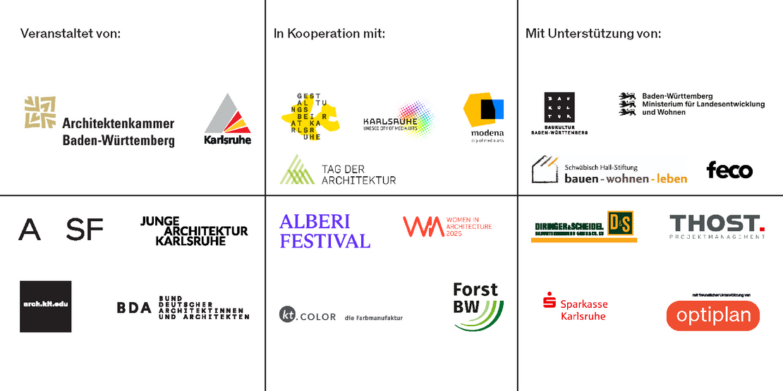 Das Event ist ein Gemeinschaftswerk von Stadtplanungsamt, Gestaltungsbeirat, Unesco City of Media Arts, Architekturfakultäten des KIT und der Hochschule Karlsruhe, BDA, ASF und SRL sowie der Jungen Architektur Karlsruhe unter Federführung der Architektenkammer Baden-Württemberg Karlsruhe. Alle bringen ihre unterschiedlichen Expertisen und Inhalte ein und tragen so zu einem vielschichtigen und breitgefächerten Programm bei.