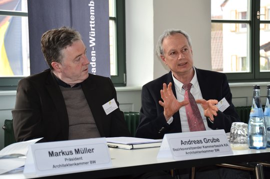 Ziel sei, „herausragende Projekte und Projektideen zu prämieren, um Beispiele guten Bauens und Planens aufzuzeigen und für das Thema insgesamt zu sensibilisieren“, erläuterte Regierungspräsidentin Nicolette Kressl. Der Kraichgau sei eine attraktive und vielfältige Kulturlandschaft, eng verknüpft mit den Ballungs- räumen Karlsruhe, Pforzheim und dem Rhein-Neckar-Raum. Dies ergebe ein Spannungsfeld in der Frage, welches Wohnumfeld die Menschen haben.Präsident Markus Müller machte deutlich, dass Baukultur immer Ergebnis vielfältiger Prozesse sei. „Wir müssen über die Herausforderungen sprechen, die sich dabei ergeben“, betonte er. Ein Auszeichnungs- verfahren sei ein solcher Prozess. Von der Auftaktveranstaltung in Oberderdingen könne deshalb ein großartiger Impuls ausgehen. Baukultur sei ein Thema, das den öffentlichen Raum präge und wo die öffentliche Hand Vorbildfunktion habe, stellte der Landrat des Landkreises Karlsruhe, Christoph Schnaudigel, klar. „Wegweisende und Beispiel gebende Projekte öffentlich hervorzuheben ist der richtige Weg, damit sich das gewünschte Bewusstsein für Baukultur bei Eigentümern und Planern durchsetzt.“