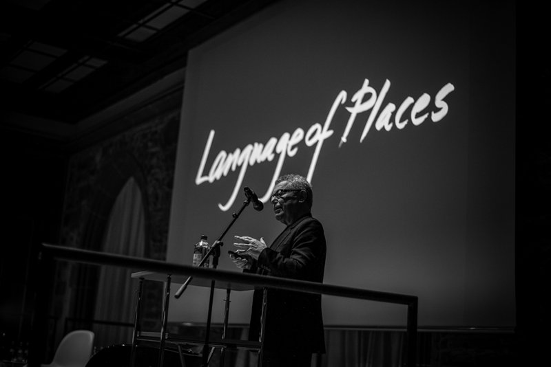 Etwa 800 Zuschauer sahen und hörten dann aber einen Vortrag mit zahlreichen philosophischen Verweisen und einigen durchaus poetischen Momenten. Wobei Libeskinds Gedanken zum Bauen im Kontext jedes Werben um vordergründige Popularität fehlte. Wie er auch bewies, dass man sich als Star der Szene durchaus intensiv auf Umgebung und Historie eines Ortes einlassen kann. Moderator Reinhard Hübsch betitelte den Vortrag im Vorfeld mit "difficulties", als "Bauen an schwierigen Orten", wobei der Zuhörer nach und nach zur Erkenntnis gelangte, dass Libeskind ohne die Herausforderung des jeweiligen Ortes, den physischen, spirituellen und historischen Besonderheiten, seine erzählerische Formensprache gar nicht entwickeln kann.