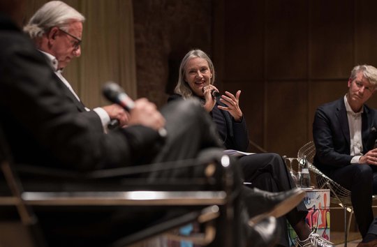 Für die anschließende Diskussion kommen Christiane Riedel, die selbst über eine tänzerische Ausbildung verfügt und als geschäftsführender Vorstand das ZKM in Karlsruhe leitet und Nikolai B. Forstbauer, vom Kulturresort der Stuttgarter Nachrichten auf die Bühne. Neben der Frage wie moderne Medien und die Digitalisierung die Architektur prägen werden – Christiane Riedel träumt von Fassaden, die als veränderbare Interfaces die Stadt von morgen bespielen – wird die Frage nach der skulpturalen Qualität der vorgestellten Projekte gestellt. Dabei wird die Frage diskutiert, ob sich die Architektur – wie auch Musik und Tanz –durch die Integration von Bewegung aber auch den Gebrauch von Medien weg von einer statischen hin zu einer zeitbasierten Kunst entwickeln kann. Damit kann sich auch Moderator Wolfgang Riehle anfreunden, dem das berühmte Schopenhauer Zitat, Architektur sei gefrorene Musik, noch nie gefallen hat.Was bleibt von diesem durchaus anregenden Abend im Gedächtnis? Sicherlich hat das Publikum formal eindrucksvolle und ikonographische Architekturen gesehen, denen man das Prädikat „Leuchtturmprojekte“ gerne verleihen mag. Im Nachgang sind den Projekten dann aber auch eine gewisse Glätte und eher oberflächliche Effekte eigen; die poetische Qualität eines Andreas Cukrowicz oder eines Enrique Sobejano - Delugans Vorgänger bei den Heidelberger Schlossgesprächen – vermisst man in den vorgestellten Bauten. Mag sein, dass dafür eine Intimität zwischen Haus und Besucher erforderlich ist, die bei dieser Art von Großprojekten nicht mehr gegeben sein kann.