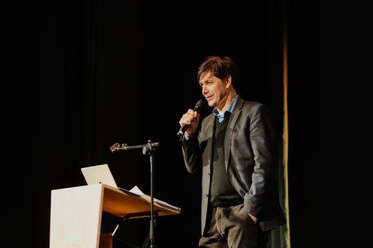 Höhepunkt war die Festrede von Prof. Thomas Auer: Unter dem Titel „Lost in Transformation?“ rechnete er mit der Übertechnologisierung und der unsachgemäßen Reglementierung am Beispiel von Büro- und Schulbau ab. Durch zweifelhafte Vorgaben und das starre Festhalten an überholten Energieeffizienz-Standards ist ressourcenschonendes Bauen und ein nachweislich nachhaltiger Betrieb von Gebäuden langfristig eher unmöglich geworden. Stattdessen forderte er in seinem rund einstündigen Vortrag die Rückbesinnung auf passive Strategien und eine robuste Baukultur jenseits von gläserner high-tech Architektur.