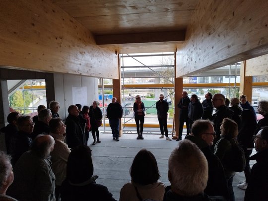 Am Donnerstag, den 21. März 2024 um 17:00 Uhr, fand die Besichtigung der Baustelle des Holzparkhauses am Schwanenweg statt, einem IBA'27 Projekt der Stadt Wendlingen von Herrmann+Bosch Architekten. In inspirierender Atmosphäre erhielten die Teilnehmenden spannende Einblicke in das innovative Konzept und die nachhaltige Bauweise des Projekts. Besonders haben wir uns über den fachlichen Austausch und die lebendigen Gespräche vor Ort gefreut.
