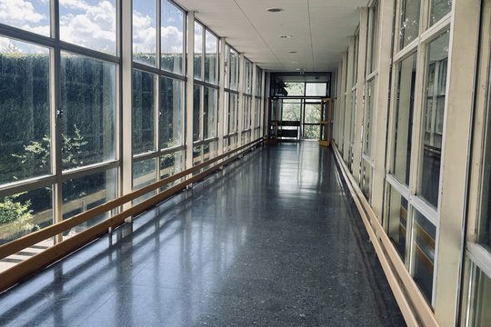 Lehrer Sperling gab einen Einblick in die Anforderungen eines modernen Schullebens und führte auch durch die naturwissenschaftlichen Räume. Er zeigte die jeweiligen bauzeitlichen Teile im Unterschied zu den neuen. Die beiden im Jahr 2001 angebauten Teile, die nicht in der Sanierung enthalten sind, würden ähnliche Probleme aufweisen wie der Bestandsbau. Er nannte als Hauptproblem des Gebäudes die Hitze und das Vergeuden von Energie. 50 Prozent Energieeinsparung seien angepeilt. Die Erhitzung und das Problem Wärme-Kälte beschäftigte auch die Teilnehmer, die beispielsweise besonderes Isolierglas oder besondere Jalousien vorschlugen. Hardegger, Architekt der Behnisch-Gruppe, berichtete über die jeweiligen Verhandlungen mit dem Denkmalamt und über die Abgleichungsprozesse. Heizung, Energie und Lüftung stellten heute in Zeiten von Corona eine ganz andere Herausforderung dar als zu Zeiten von Behnisch. Durch Messungen in den Musterräumen gewinne man eine Datenbasis, die man für die Restaurierung nutzbar mache.