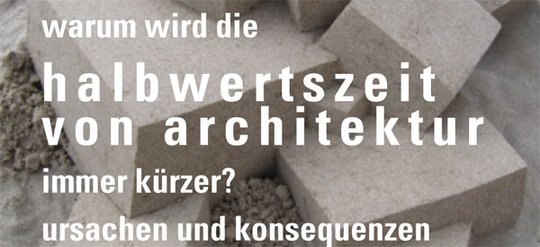 Das 30. Hohenheimer Gespräch 2012 hat sich mit der Frage nach der (leider oder glücklicherweise) immer kürzer werdenden Halbwertszeit von Architektur, den Ursachen dafür und den Konsequenzen daraus beschäftigt. Immer häufiger taucht in Interviews, Stellungnahmen und Diskussionsrunden dieser Begriff aus der Atomphysik auf, der die Zerfallszeit eines radioaktiven Elements definiert.