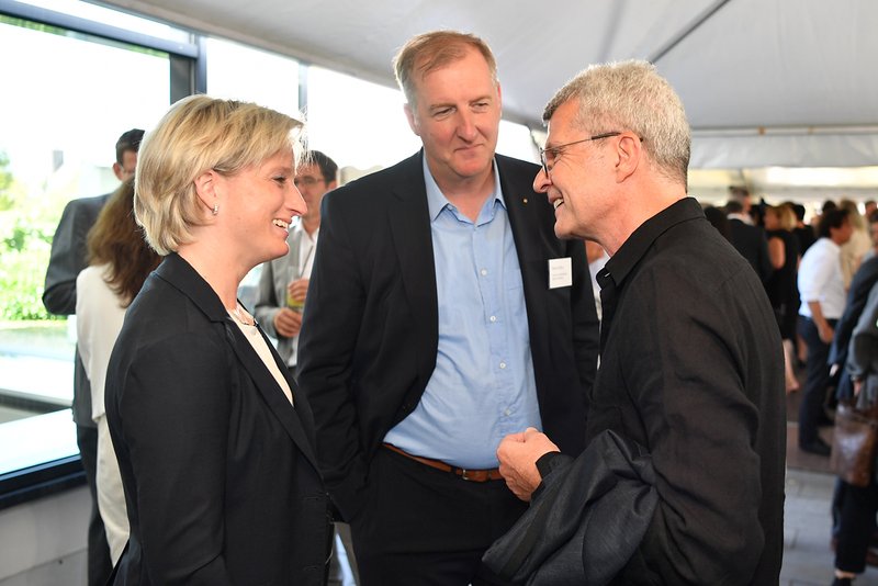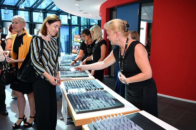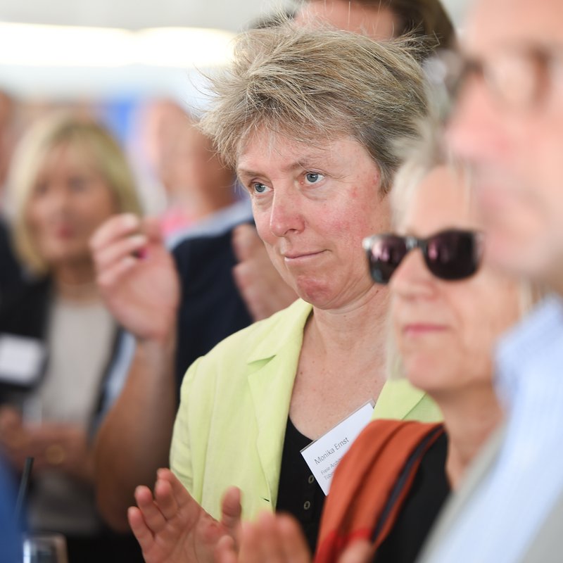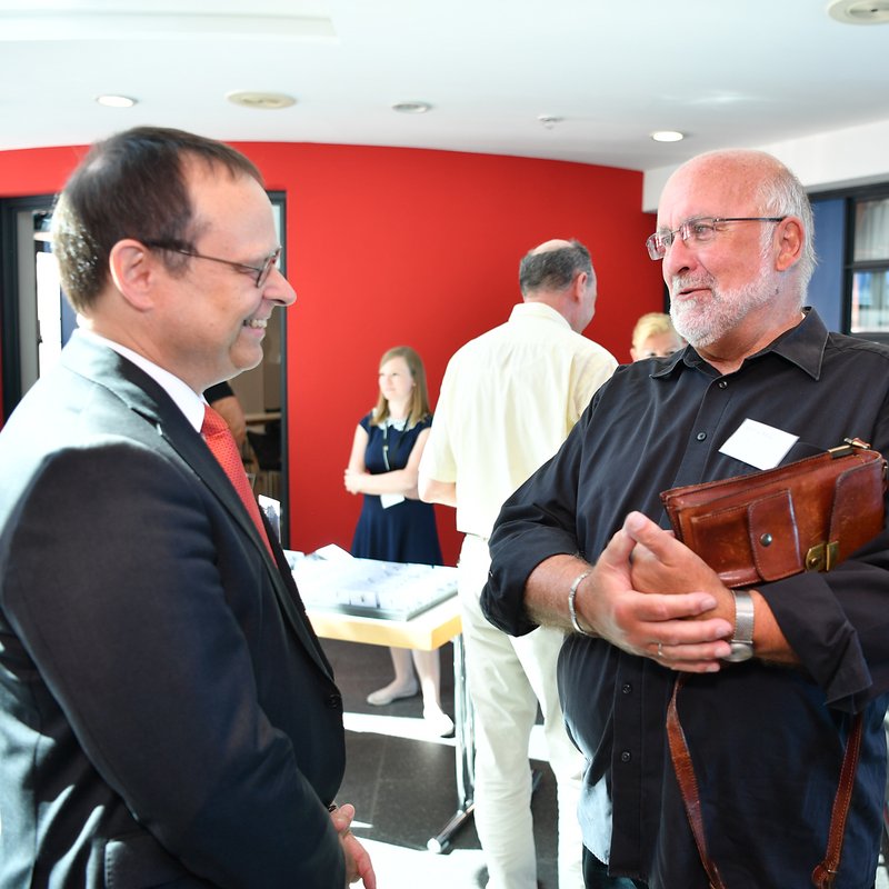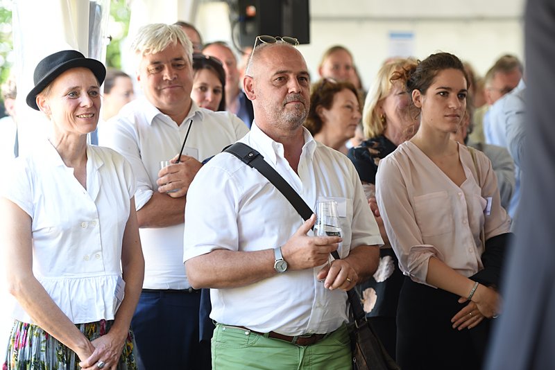 Erstmalig beim Sommerlichen Empfang fand die feierliche Verleihung des Ausloberpreises statt. Mit diesem würdigt die Architektenkammer seit 1986 bereits zum zwölften Mal solche Bauherren, die gute Architektur und zukunftsfähigen Städtebau durch Planungswettbewerbe fördern. Denn Wettbewerbe sind aus Sicht der Kammer ein wichtiger Erfolgsgarant für die Baukultur. Entsprechend unterstützt sie die Auslober von Anfang an durch kostenlose individuelle Beratung, sodass die Verfahren maßgeschneidert zur Bauaufgabe passen und rechtssicher ablaufen.