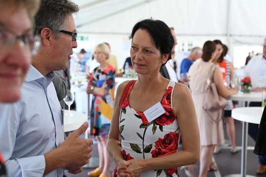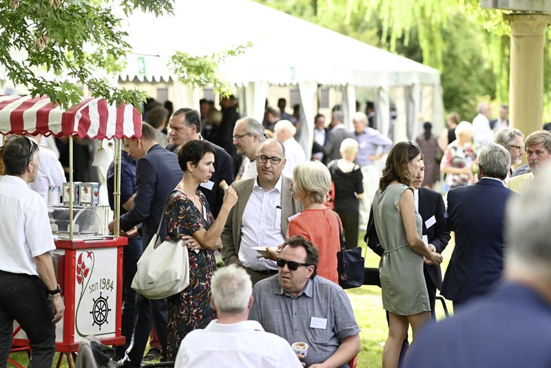 "Unsere Tradition, zum Sommerlichen Empfang exponierte Politikerinnen und Politiker als Redner einzuladen, gründet in der Erkenntnis, dass Architektur und Politik wechselseitig verflochten sind", erklärte Markus Müller den – wie immer – sehr zahlreichen Gästen.