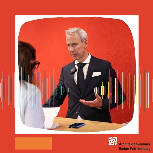 Keynote-Speaker Dr. Michael Kopatz vom Wuppertal-Institut für Klima, Umwelt, Energie hält den Menschen im Kurzinterview mit dem AKBW-Team für einen „genialen Verdrängungskünstler“. Dazu gebe es systemische, strukturelle Faktoren, dass beispielsweise mit dem Baukindergeld das Einfamilienhaus gefördert werde. „Auch die Politik kann die Schizophrenie leben: einerseits euphorische Beschlüsse fassen und gleichzeitig Fläche versiegeln und Dinge tun, die dem hundert Prozent zuwiderlaufen. Die Architekten, gerade auch die Kammer, haben großen Einfluss auf lokale Politik und Verwaltung, aber auch auf den Bund dahingehend, die Rahmenbedingungen und die Standards so zu erhöhen, dass man auch als Architektin oder Architekt das Richtige im Sinne des Klimaschutzes tun kann, wenn die Bauherrschaften nicht wollen. Da muss noch viel mehr Druck in den Kessel.“