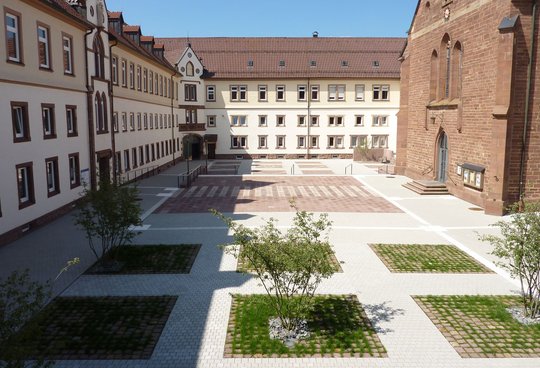 Beim barrierefreien Bauen geht es darum, die Belange zahlreicher Handicaps mit einzubeziehen. Dies sah die Jury besonders gut von der auftraggebenden Stiftung St. Franziskus Heiligenbronn gemeinsam mit faktorgruen Landschaftsarchitekten umgesetzt. So finden sich im Klosterhof und Schulzentrum St. Benedikt in Schramberg-Heiligenbronn sorgsam ausgewählte Belagskombinationen und Treppenanlagen für Menschen mit Restsehfähigkeit. Die "Elemente der visuellen Barrierefreiheit wirken nicht aufgesetzt, sondern spielen als Teil der Gestaltung auf unprätentiöse Weise mit."