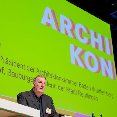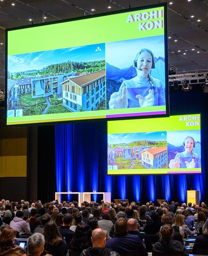Mehr als 1.100 Teilnehmerinnen und Teilnehmer kamen am Mittwoch, 19. April, zum Branchentreff ARCHIKON, dem bundesweit größten Architekturkongress, auf der Messe Stuttgart zusammen. Zusätzlich hatten sich Hunderte Interessierte online zugeschaltet.