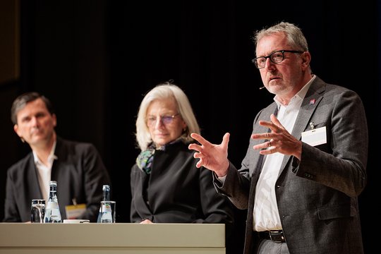 Mannheims Oberbürgermeister Peter Kurz relativierte: „Nichts kommt von allein! Wir wissen, was kommen müsste, und die Realität ist eine andere.“ Kurz stellt eine „Spaltung der Arbeitswelten“ fest in gleichzeitig Fortschritt und Stagnation. Architektur sei eine notwendige Bedingung für eine gute Stadt, aber keine hinreichende. Alle funktionierenden Beispiele hätten gemeinsam: entweder Zugriff auf die Grundstücke oder engagierte Partner. Das Bauplanungsrecht sei ein viel zu stumpfes Schwert. „Wir brauchen ein generelles Vorkaufsrecht für die Kommune, um eingreifen zu können.“ Und die Gesellschaft brauche mehr Bewusstsein dafür, was Stadt bedeute – eindeutig ein Bildungsauftrag.