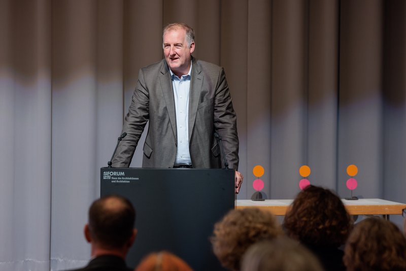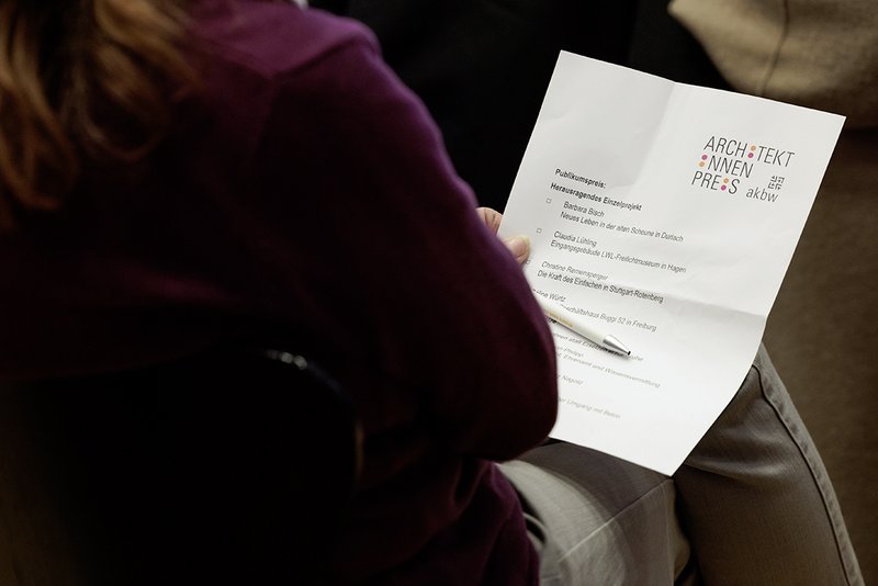 Kammerpräsident Markus Müller sprach in seiner Begrüßung von der „Korrektur einer falschen Gewichtsverteilung“. Ob Gender-Pay-Gap oder Wettbewerbe: „Die Selbstverständlichkeit, mit der Frauen in der Architektur repräsentiert sein sollten, gibt es nicht.“ Die Kammer wolle hier mit großer Ernsthaftigkeit einen Denkprozess durchlaufen und anstoßen. Vizepräsidentin Prof. Susanne Dürr nannte die Auslobung des ARCHITEKTINNENPREIS akbw eine Schatzsuche: „Auf einmal liegen sie alle da!“ Dass sich diese Frauen „ins Licht stellen“, sei für sie ein ganz besonderer Moment.