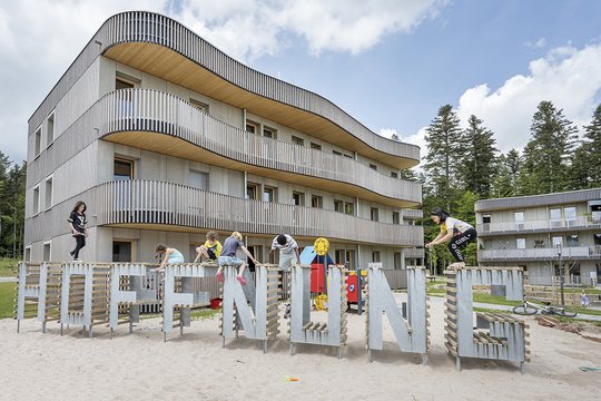 Architekt Thorsten Blatter, Partner bei andOffice Stuttgart, präsentierte das innovative Integrationswohnungsprojekt „Hoffnungshäuser“, markante, „emotional“ gestaltete Baukörper mit geschwungenen Balkonen und flexiblen Grundrissen. In Kooperation mit der Hoffnungsträger Stiftung entwickelte sein interdisziplinär arbeitendes Büro ein serielles Baukastenkonzept für Geflüchtete und Einheimische. Die Hoffnungshäuser setzen auf eine flexible Holzkonstruktion mit einem Dreimetergrundraster und variablen Gebäudelängen von 12 bis 24 Metern dank elf verschiedener Wandaufbauten. Durch Verzicht auf unnötige Ausbaugewerke sei eine wirtschaftliche Umsetzung im Holzbau möglich, so Blatter. Das serielle Planen habe die Bauzeit zudem auf eine effiziente Spanne von etwa sechs bis sieben Monaten pro Gebäude und gerade viertägiger Holzbau-Montage verkürzt. Blatters Fazit deshalb: Es gebe „große Potenziale“ durch serielle Produktion und Vorfertigung. Kritisch merkte er an, eine ökologische Zertifizierung (Voraussetzung für bestimmte Förderungen) sei „sehr aufwändig“, auch fehlten Flüchtlingsunterkünfte-Anforderungen und die neue Holzbaurichtlinie „steht radikalen, innovativen Ansätzen entgegen“.