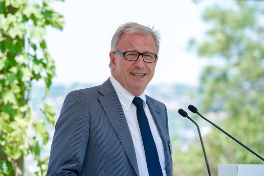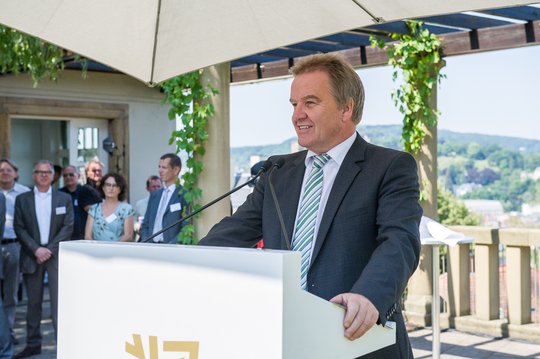 Die Themen Nachhaltigkeit und Klimaschutz erfreuten sich eines großen öffentlichen Interesses, betonte Umweltminister Franz Untersteller MdL. Und auch die Möglichkeit, sich am integrierten Energie- und Klimaschutzkonzept (IEKK) zu beteiligen, sei auf sehr gute Resonanz bei den Bürgern gestoßen. In den Medien werde über die Energiewende oft nur noch in Bezug auf die Strompreise kommuniziert. Dabei solle man doch besser den Blick auf das große Potenzial richten, das daraus in Baden-Württemberg für Technologie und Forschung erwüchse. Eindringlich rief er alle Anwesenden auf, das energieeffiziente Bauen zu ihrer Sache zu machen.